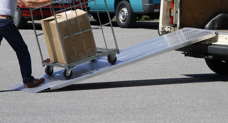 Aluminium-Verladeschienen Typ Kleinrampe sind für Höhendifferenzen bis 840 mm und Tragkräften bis 1020 kg/Paar. Robuste Verladeschienen für den professionellen Gebrauch bei größeren Lasten. Die spezielle Perforierung der Schienen garantiert hohe Rutschhemmung (R12) bei jeder Witterung. In Breiten bis 800 mm für Geräte mit unterschiedlichen Spurbreiten. Mäher, Geräteträger, Universalsauger, Mobil und Baumstumpffräsen im Alltag sicher verladen. Achten Sie auf ausreichende Bodenfreiheit des zu verladenden Gerätes. Als platzsparende Variante auch faltbar erhältlich.