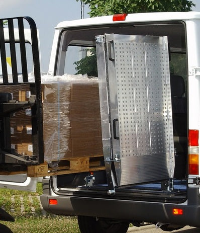 Fahrzeugrampe für Handwerker, KMUs wie zum Beispiel Gebäudereinigungsfirmen, Massentransporter, Bäckereien oder Kurierdienste wurde die Laderampe entwickelt. Die leichte Bedienbarkeit beschleunigt und vereinfacht die Abläufe beim häufigen Be- und Entladen. Gaszylinder gewährleisten einen geringen Kraftaufwand beim Bedienen. Die gelochte Fahrfläche bietet eine hohe Rutschsicherheit und durch die Lochung kann Regen, Schnee und Schmutz schnell entweichen. Während der Fahrt steht die Rampe in senkrechter Position und wird durch entsprechende Verschlusssicherungen gehalten. Integrierte Gummipuffer verhindern Klappergeräusche.