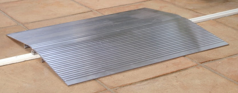 Die zweiteilige Schwellenbrücke ist bei unterschiedlich hohen Türschwellen einsetzbar. Sie ist sehr leicht und handlich. Diese Rampe ist keine selbsttragende Brücke, d.h. der Drehpunkt in der Mitte muss immer auf der Schwelle aufliegen.