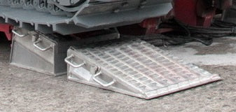 Der Auffahrkeil ist für das Verladen von Fahrzeugen mit Stahlketten von 30t bis 50t pro Paar konzipiert.