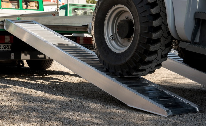 Rampen mit Auflagerkopf, Rohranschluss oder Einhängekopf. Für Pneus, Stahl- oder Gummiketten. Preise inclusive MwSt. und Transport vor Ort.