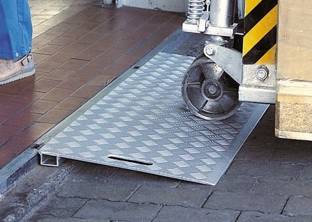 Die Warenkeilrampe wurden entwickelt, um mit Palettenhubwagen, Staplern oder anderen Flurförderzeugen Stufen und Schwellen zu überwinden.