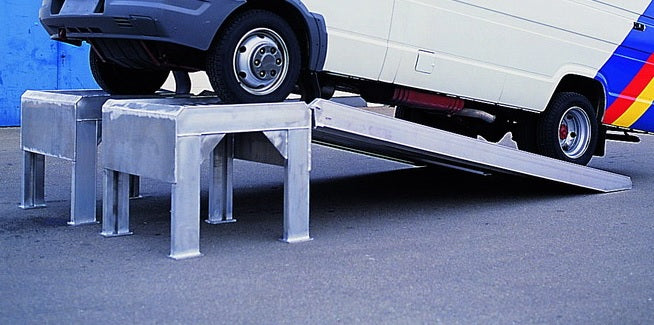 Dieser Rampentyp findet Verwendung bei Wartungs-arbeiten oder der Reinigung von Fahrzeugen wie Rasentraktoren, Staplern, Kleintransportern und bietet eine kostengünstige Alternative zu einer Grube oder einer Hebebühne. Andere Abmessungen auf Anfrage.