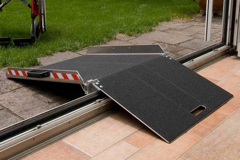 Mit diese Rampe sind Balkon oder Terrasse keine unerreichbaren Zonen mehr, einfach bei Regen die Rampe einklappen und später wieder ausklappen mit einer Hand. Höhenverstellbare Spindelfüße ermöglichen den Einsatz an fast jeder Türschwelle.
